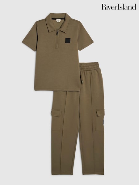 River Island Green Slim Fit Scuba Polo & Jogger Set
