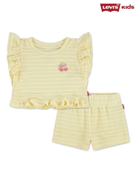 Levi's® Yellow Cowboy Bear Short Sleeve T-Shirt and Pleated Shorts Set 2 Piece