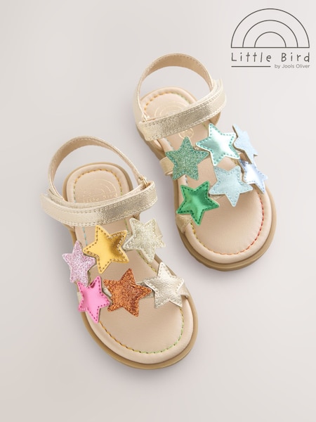 Little Bird by Jools Oliver Gold Metallic Rainbow Star Sandals
