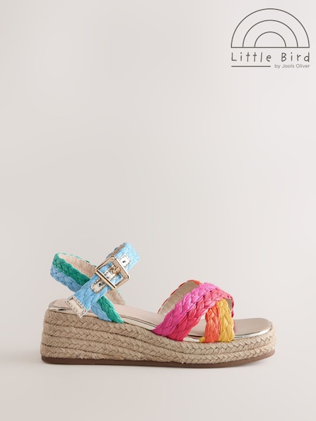 Little Bird by Jools Oliver Pastel Rainbow Plaited Cross Strap Wedge Sandals