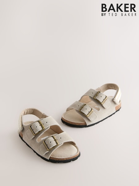 Baker by Ted Baker Double Buckle Pearl Footbed White Embossed Sandals