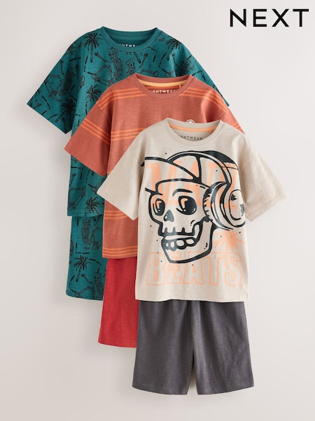 Multi Skulls 100% Cotton Short Pyjamas 3 Pack (3-16yrs)