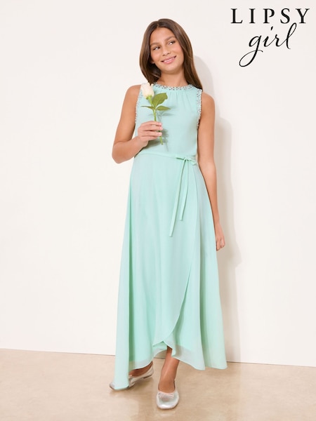 Lipsy Green Embellished Maxi Occasion Dress (7-16yrs)