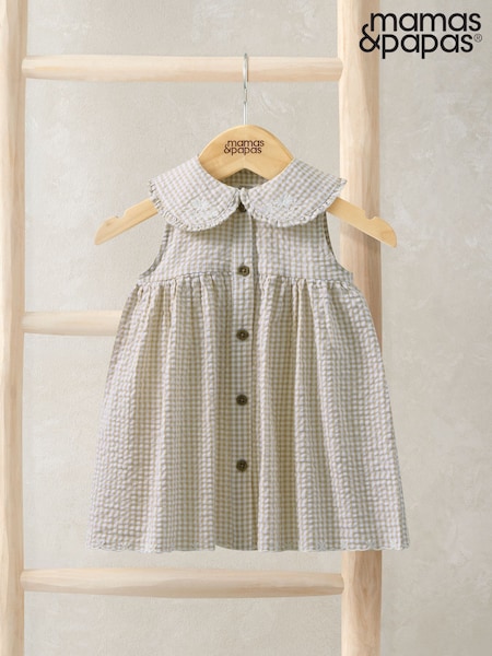 Mamas & Papas Pink Gingham Embroidered Dress