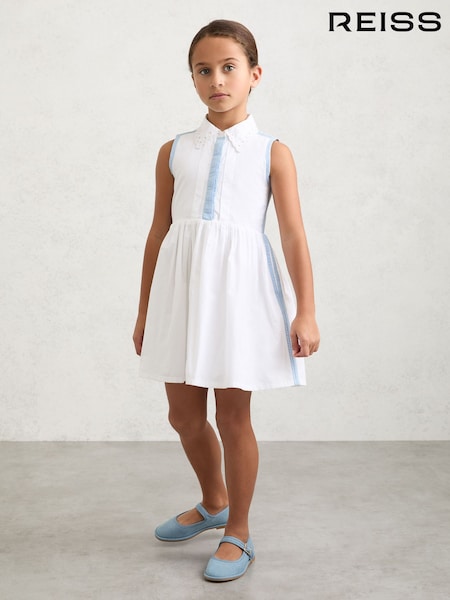 Reiss Ivory Rosie 9-13 yrs Cotton Plaited-Trim Sleeveless Dress