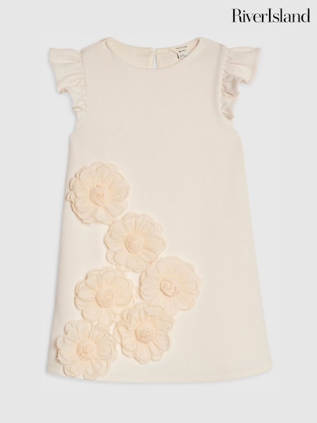 River Island Cream 3D Flower Shift Dress