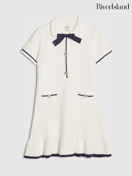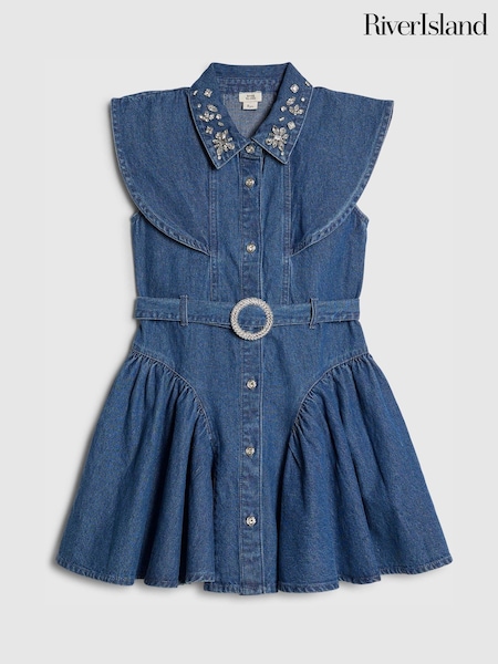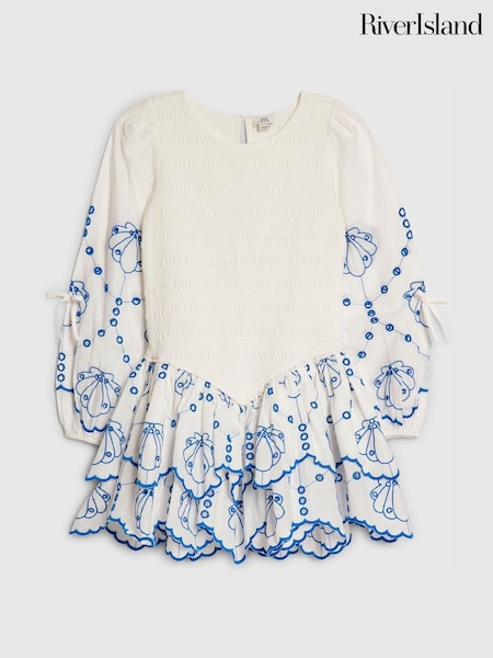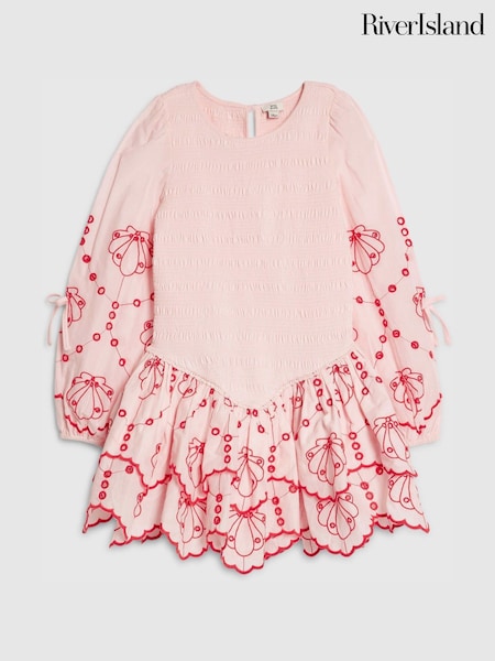 River Island Pink Long Sleeve Shirred Embroidered Dress