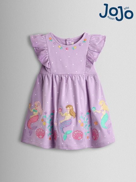JoJo Maman Bébé Lilac Purple Mermaid Appliqué Frill Shoulder Dress
