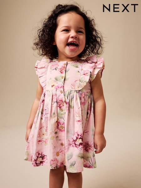 Pink Floral Double Ruffle Sleeve Dress (3mths-8yrs)