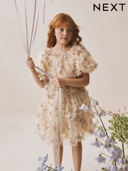 Cream Floral 3D Ruffle Mesh Occasion Dress (3-16yrs)