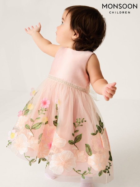 Monsoon Pink Baby Olene Floral Embroidered Tulle Dress