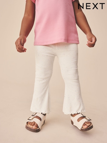 Ecru White Floral Rib Flare Leggings (3mths-7yrs)