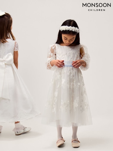 Monsoon Cream Beatrice Floral Embroidered Tulle Dress