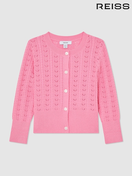Reiss Bright Pink Flo 13-14 yrs Wool-Cotton Pointelle Cardigan
