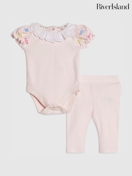 River Island Pink Heart Rib Bodysuit & Legging Set