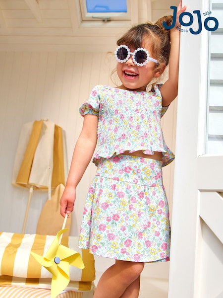 JoJo Maman Bébé Blue Smocked Cap Sleeve Top & Skort Set