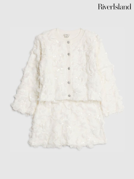River Island White 3D Flower Cardigan & Skirt Set