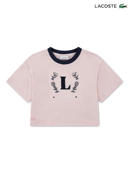 Lacoste Cream Spacer Knit Oversized Crewneck T-Shirt