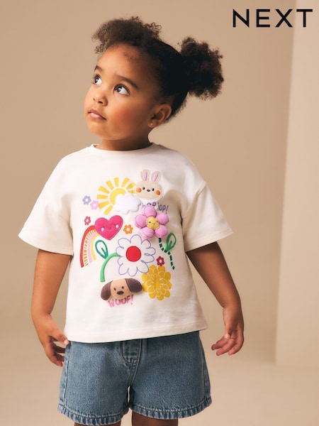 Ecru White Padded Bunny Short Sleeve T-Shirt (3mths-7yrs)