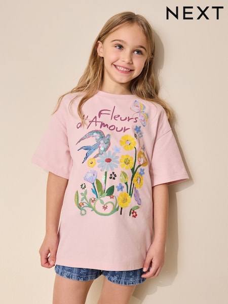 Pink Floral Sequin Graphic T-Shirt (3-16yrs)