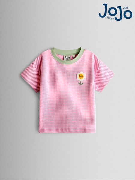 JoJo Maman Bébé Pink Daisy Striped Relaxed T-shirt