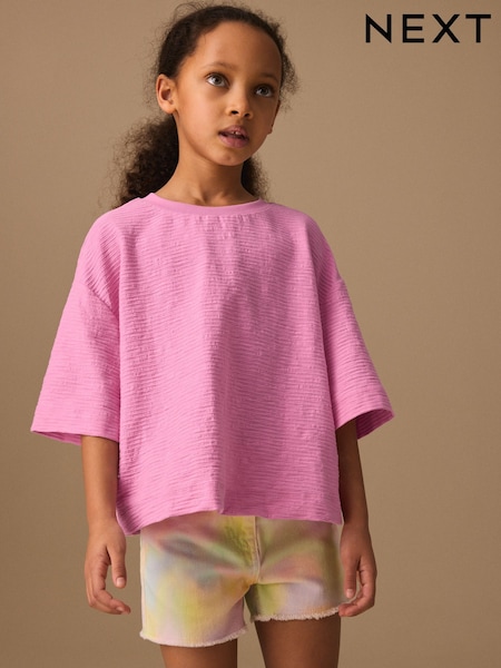 Pink Textured Oversized Boxy T-Shirt (3-16yrs)