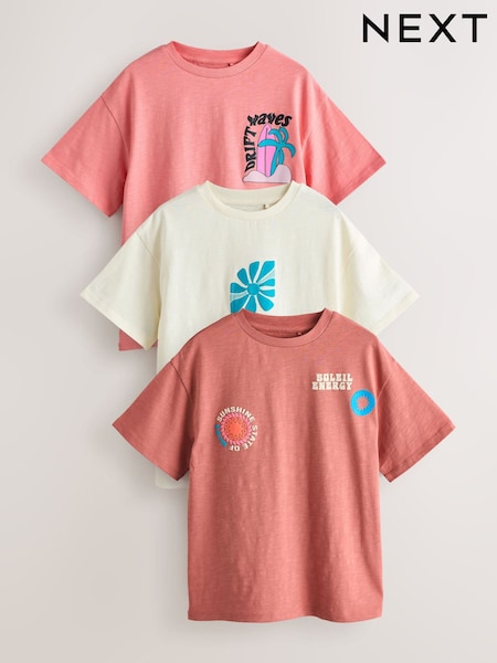 Brown/Pink Waves Oversized Graphic T-Shirts 3 Pack (3-16yrs)