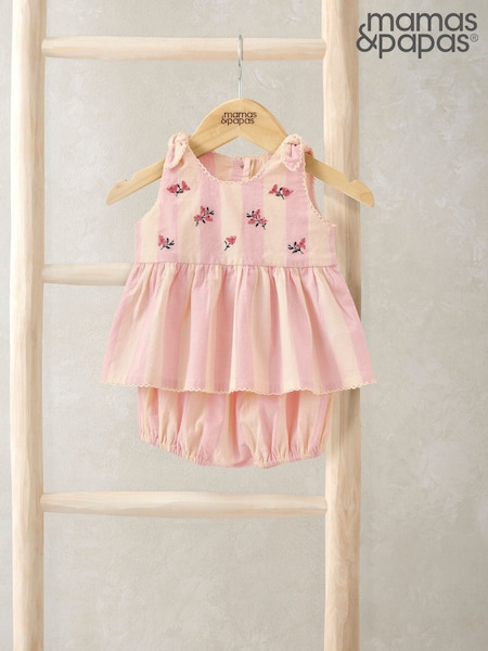 Mamas & Papas Pink Embroidered Peplum Top & Bloomers Set