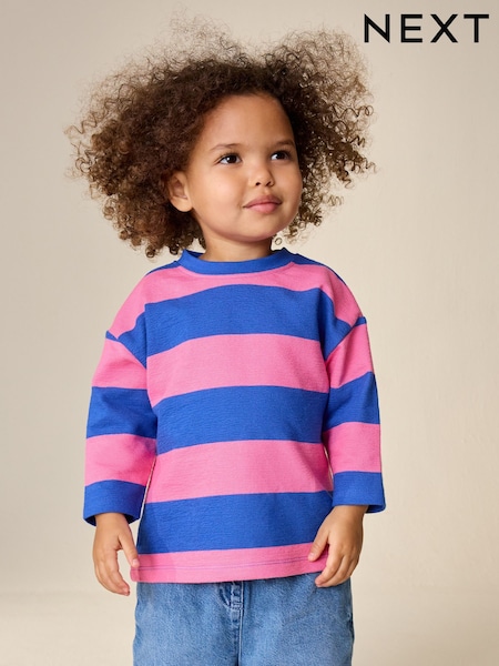 Pink Blue Stripe Long Sleeve Textured T-Shirt (3mths-7yrs)