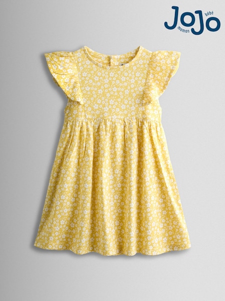 JoJo Maman Bébé Yellow Ditsy Floral Ruffle Sleeve Dress