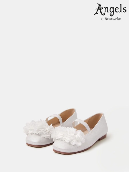 Angels By Accessorize White Girls Corsage Flower Ballet Flats Shoes