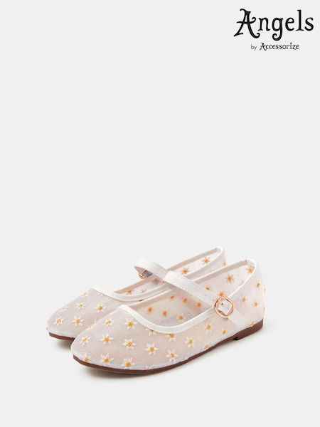 Angels By Accessorize White Daisy Mesh Ballet Flats