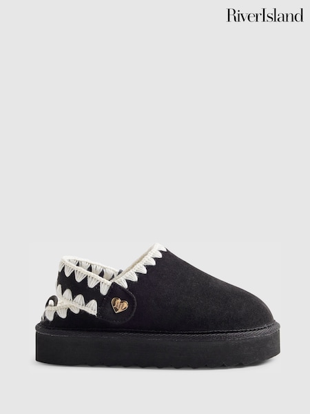 River Island Black Whipstitch Fur Strap Slippers