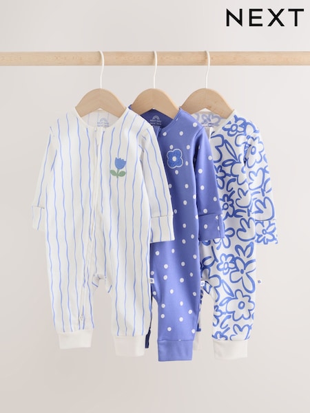 Blue Two Way Zip Baby Sleepsuits 3 Pack (0mths-3yrs)
