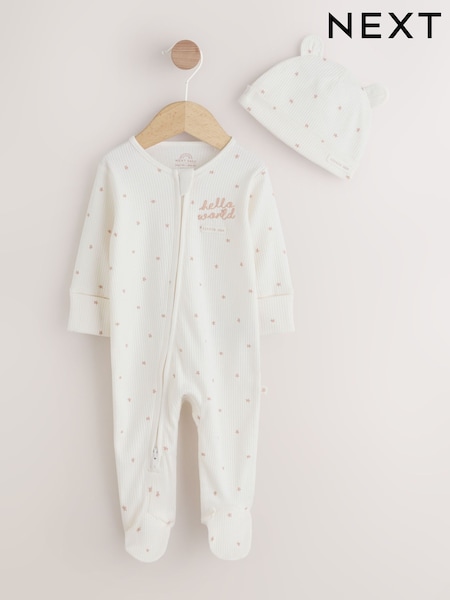 Cream Baby Sleepsuit and Hat Set (0-9mths)