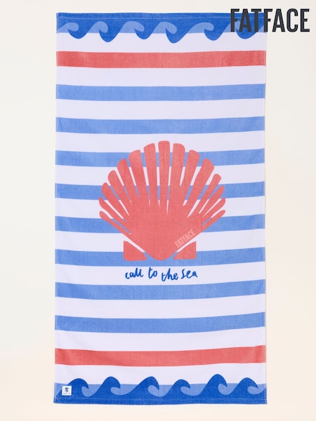 FatFace Light Blue MCS Shell Stripe Beach Towel