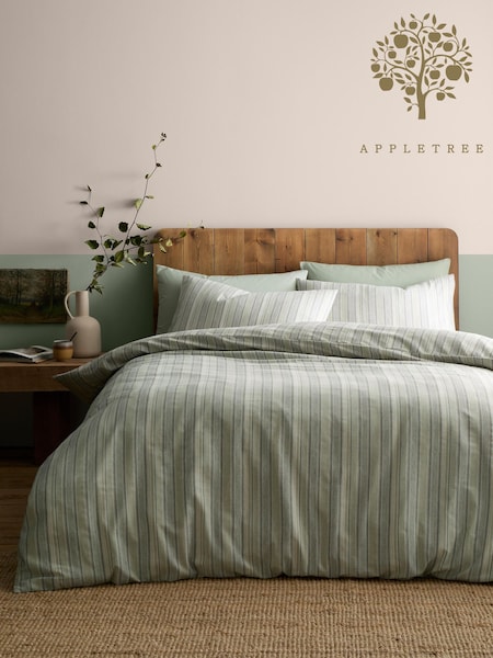 Appletree Green Yarn Dyed Wide Stripe Woven Duvet Cover Set