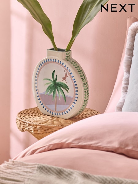 Multi Hand Painted Palm Tree Ceramic Vase