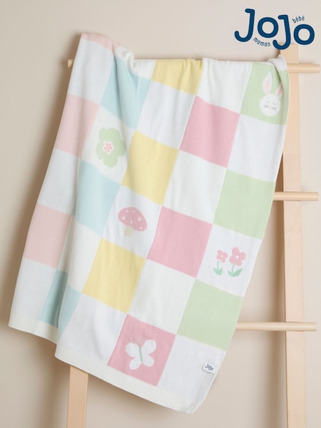 JoJo Maman Bébé Pink Woodland Checkerboard Embroidered Shawl