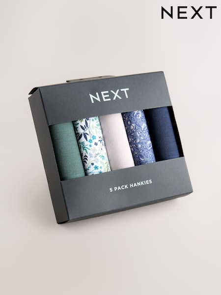 Floral Blue Green Cotton Handkerchiefs 5 Pack