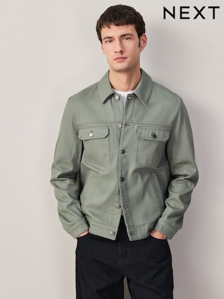 Sage Green Canvas Worker Jacket with Corduroy Collar