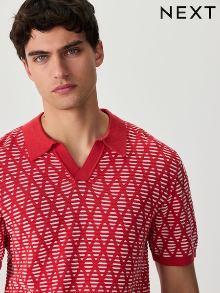 Red Regular Fit Argyle Short Sleeve Trophy Neck Polo Shirt