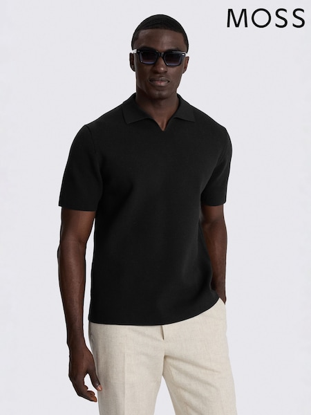 MOSS Black Merino Knitted Polo Shirt