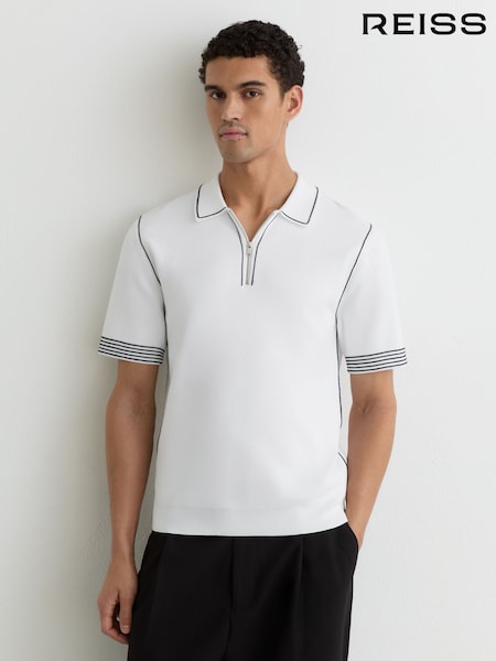 Reiss White Mason Stitch-Detail Half-Zip Polo Shirt