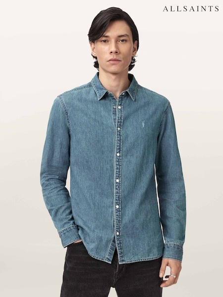AllSaints Blue Gribbs Long Sleeve Shirt