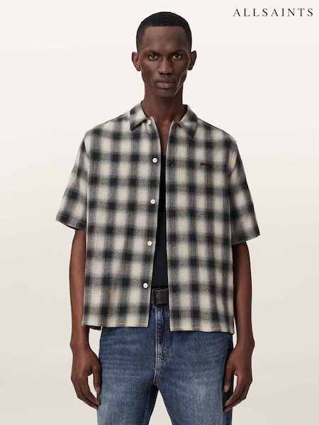 AllSaints White Hudson Black Short Sleeve Button Up Shirt