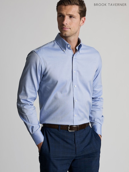 Brook Taverner Blue Pinpoint Oxford Cotton Shirt