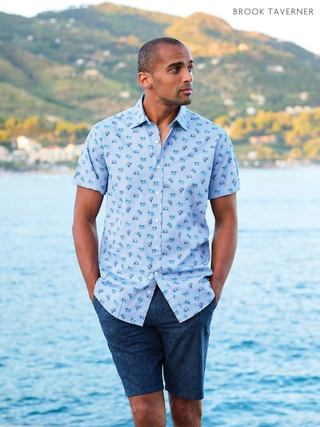 Brook Taverner Blue Tropical Print Short Sleeve Shirt