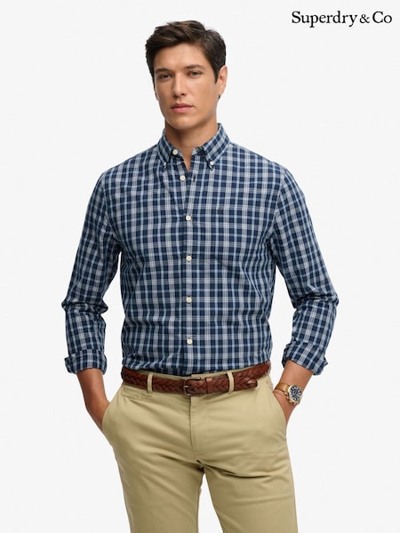 Superdry Blue Check Preppy Poplin Long Sleeve Shirt