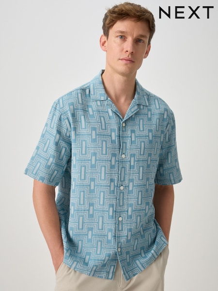 FatFace Blue Short Sleeve Geometric Print Shirt